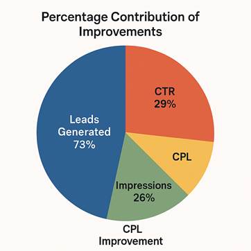 The optimization stage greatly improved the efficiency of the campaigns. The decline in CPL and the increase in leads proves that properly formulated ad structures and the use of keywords have a direct impact on the results in terms of revenue. It also implies that organized and data-supported advertising can be of great advantage to the small business.