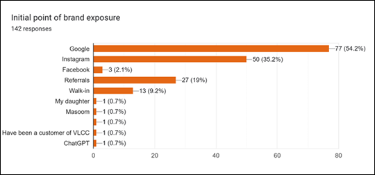 a large share of students discover VLCC through Google Search and social media,